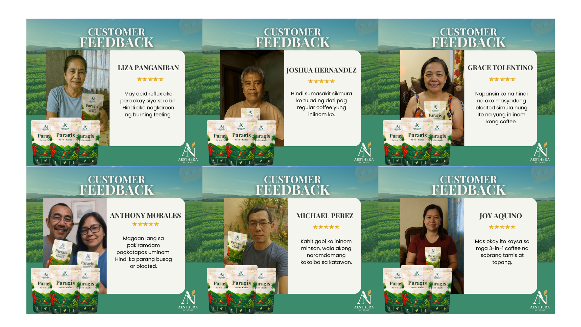 Ang Aesthera Naturals Paragis 24-in-1 Herbal Coffee ay hindi gamot at hindi dapat gamitin panggamot sa anumang uri ng sakit.